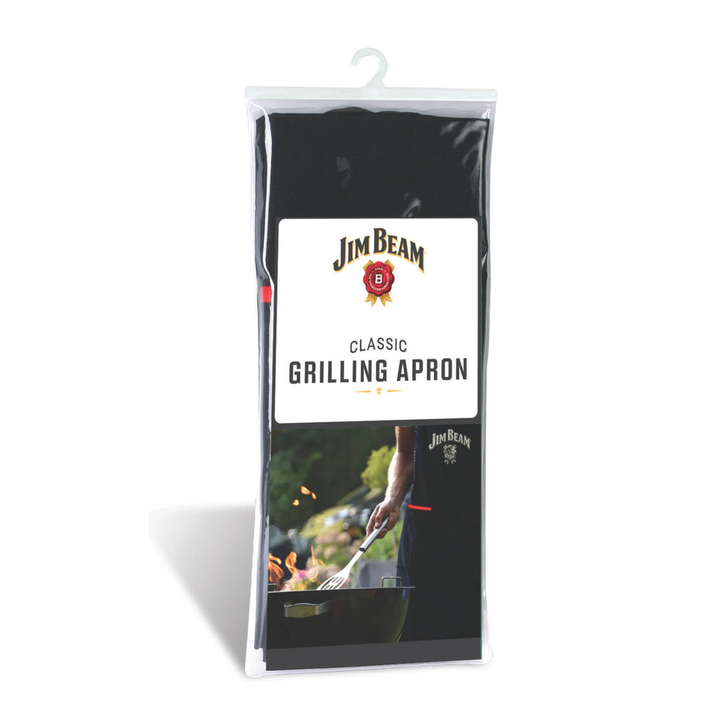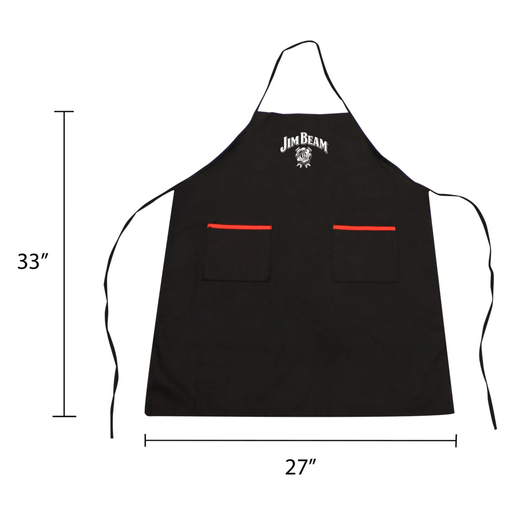 The Jim Beam Classic Grilling Apron is the ultimate choice for any outdoor or indoor cooking enthusiast. This durable cooking apron is constructed with an oversized design to cover your front and an extra deep pocket, making it the ideal BBQ apron with pocket for carrying all your grilling essentials, such as your recipe book, tongs, or your phone. Featuring the classic Jim Beam logo embroidered in front, it serves as a BBQ apron with logo, adding a touch of style. Thanks to its robust design, this apron ensures you stay clean, comfortable, and stylish throughout every BBQ or grilling session, offering unmatched convenience and protection.