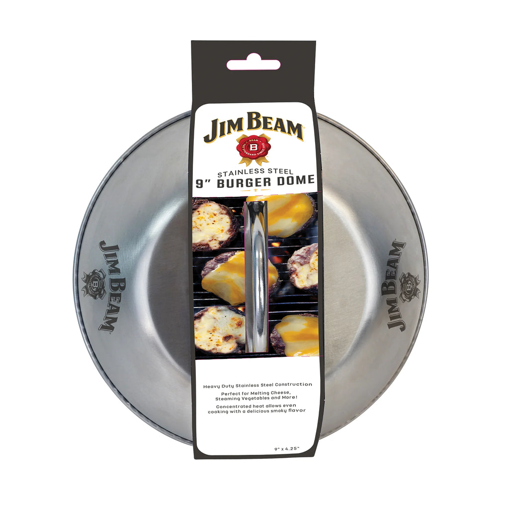 The Jim Beam Stainless Steel 9" Burger Dome is a top-tier kitchen tool designed for versatility and durability. Crafted from heavy-duty stainless steel, this 9 inch burger dome ensures long-lasting use and efficient heat encapsulation. It’s perfect for melting cheese on burgers, steaming vegetables, or keeping food warm at the table. The sleek design and large size make this cheese melting dome an ideal addition to any kitchen or BBQ setup. Elevate your cooking with this grill burger dome, which enhances your grilling experience every time.
